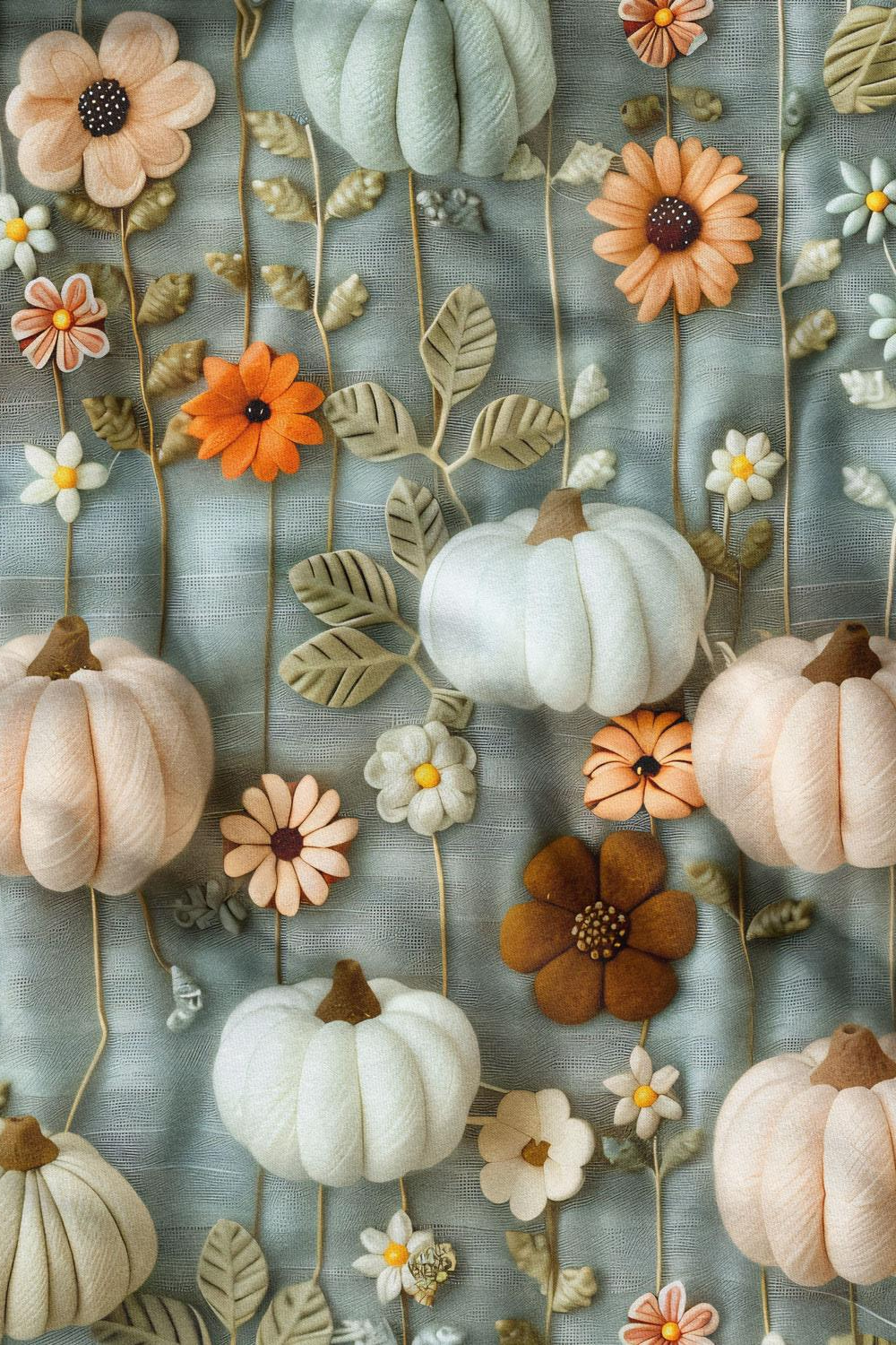 3D Sonbahar Balkabağı 2 Desenli Dijital Baskılı Kumaş