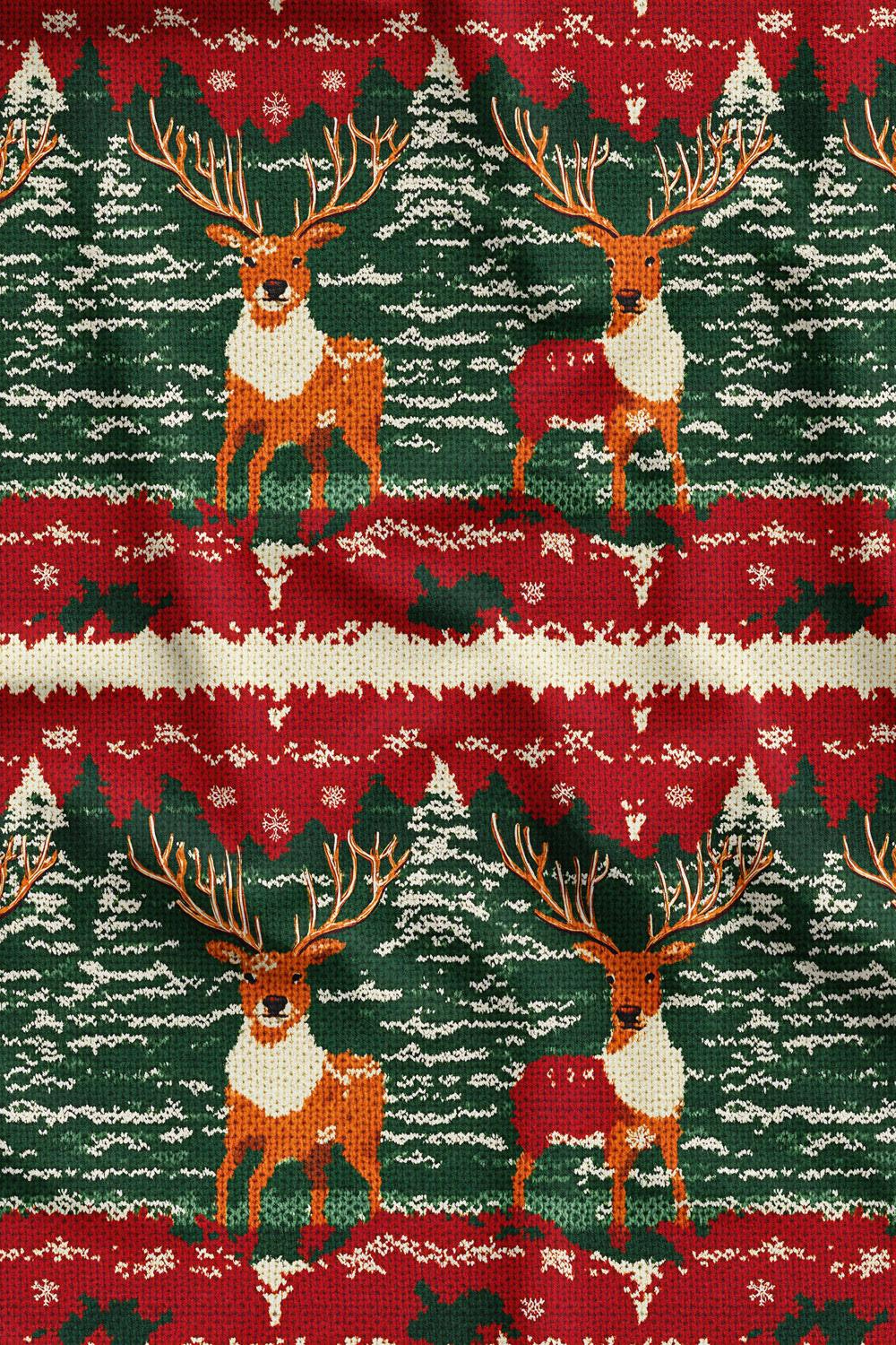 3D Yılbaşı Geyik Desenli Dijital Baskılı Kumaş (kms-1763)