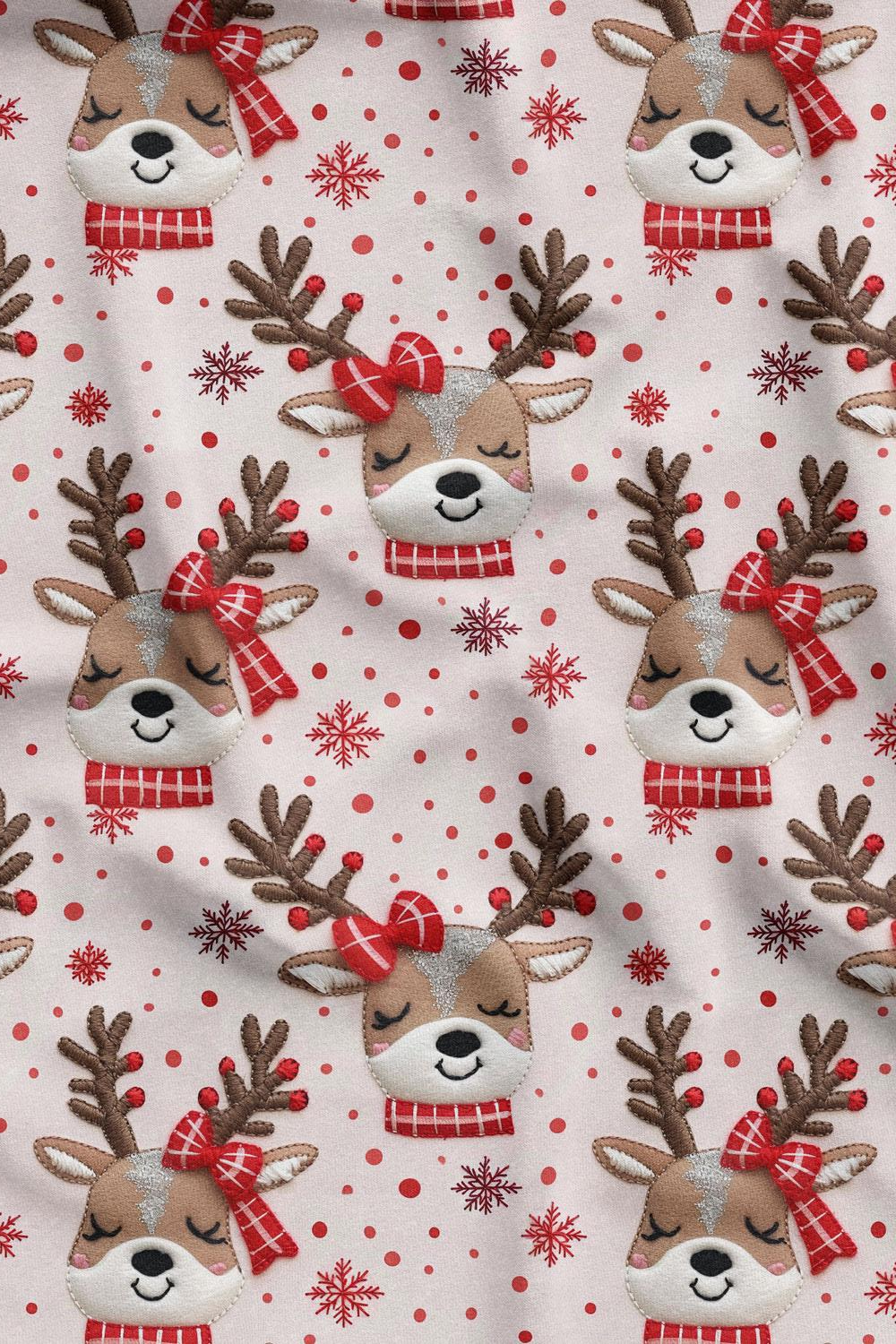 3D Yılbaşı Puantiyeli Geyik Desenli Dijital Baskılı Kumaş